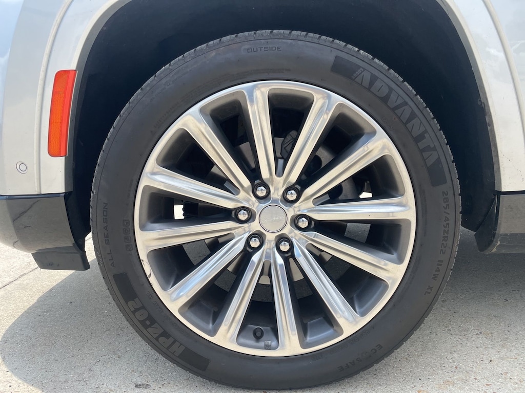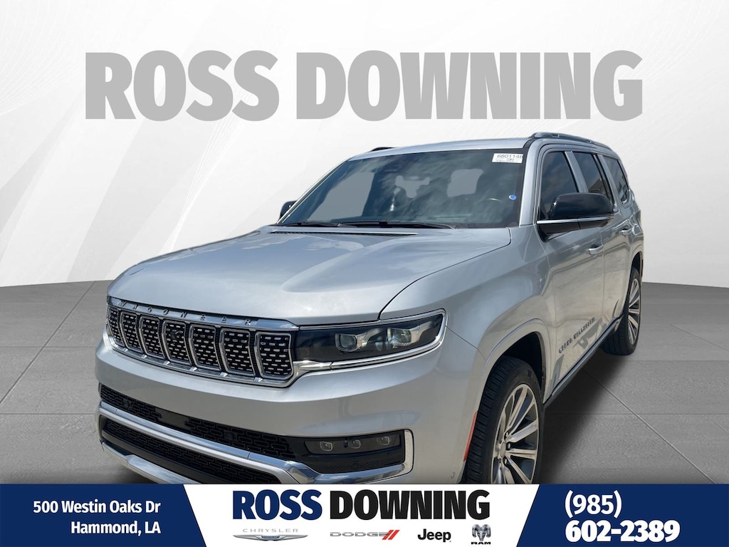 Silver Zynith 2023 Jeep Grand Wagoneer Series II 4WD 8-Speed Automatic 3.0L I6 19 Speakers, Adjustable pedals, Auto High-beam Headlights, Auto-leveling suspension, Body Color Roof, Front Bucket Seats, Front dual zone A/C, Front fog lights, Fully automatic headlights, Garage door transmitter, Heads-Up Display, Heated front seats, Heated rear seats, Heated steering wheel, Memory seat, Pedal memory, Power Liftgate, Power moonroof, Power passenger seat, Quick Order Package 28S, Rain sensing wipers, Rear dual zone A/C, Reclining 3rd row seat, Steering wheel memory, Two Tone Paint Group, Ventilated front seats.